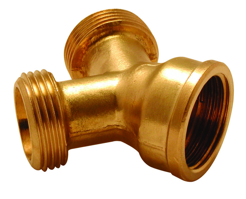 Mosadzný rozdeľovací Y s dvomi vonkajšími a jedným vnútorným závitom.
